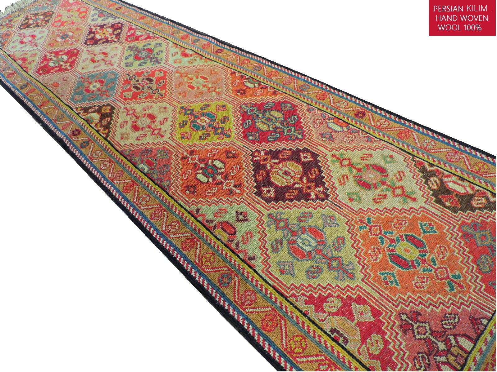 スマックキリム 手織り ペルシャキリム 高品質ウール イラン シルジャン産キリム 敷物 廊下敷サイズ 206cmx56cm【本物保証/直輸入】 の商品情報