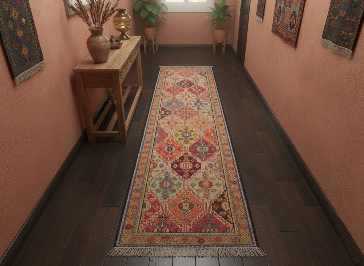 スマックキリム 手織り ペルシャキリム 高品質ウール イランシルジャン 産 敷物 廊下敷サイズ206cmx56cm【本物保証/直輸入】