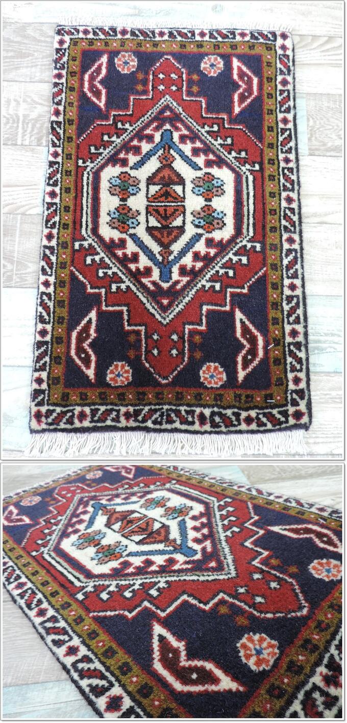 ペルシャ絨毯 カーペット ラグ ウール100% 手織り 高級 ペルシャ絨毯の本場 イランアゼルバイジャン アルダビル産 玄関マットサイズ 57cm×36cm 【本物保証/直輸入】