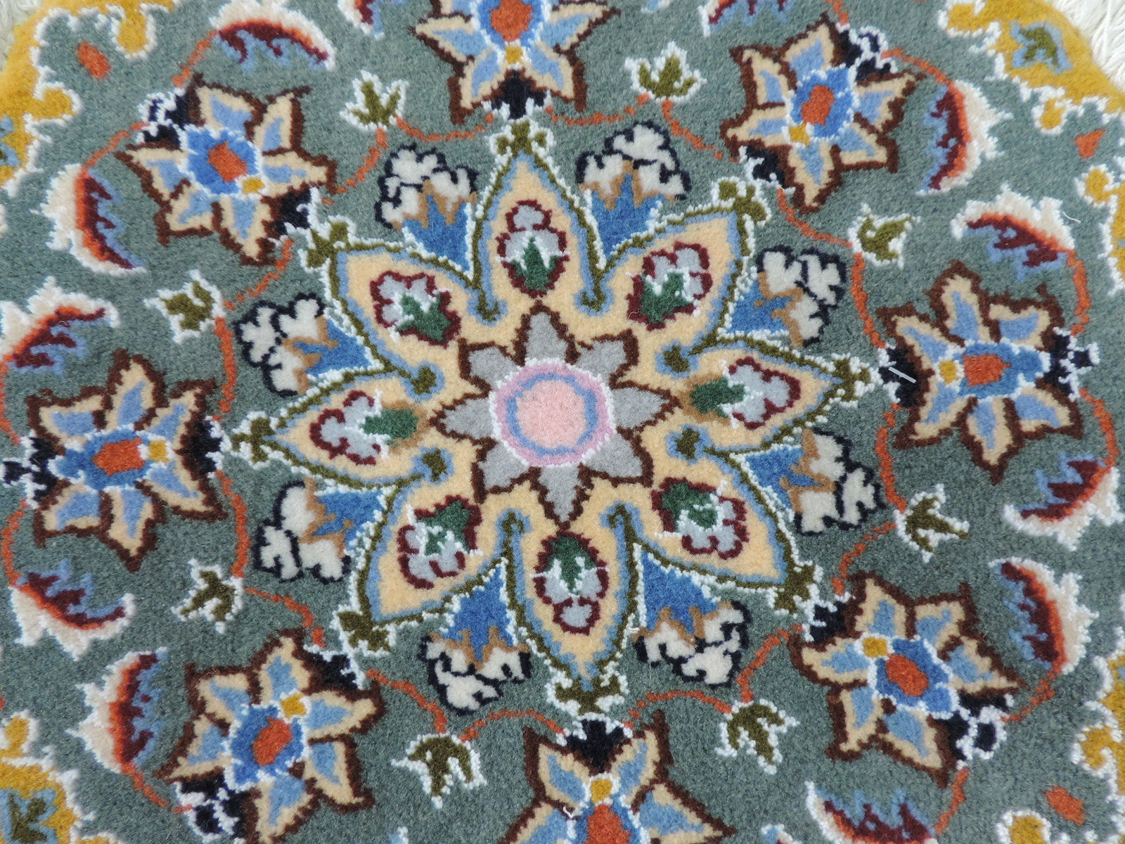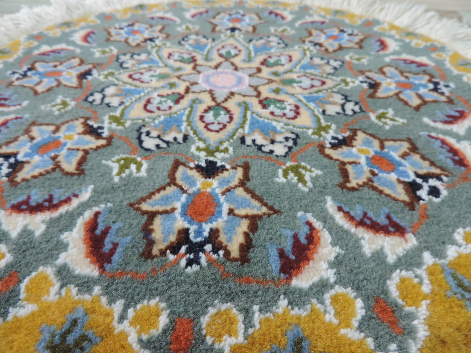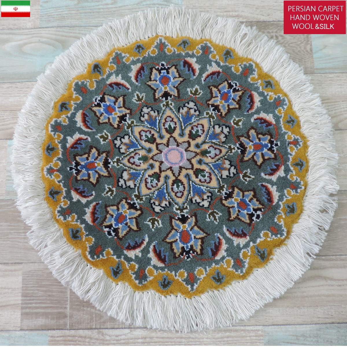 ペルシャ絨毯 愛らしいミニ丸形 ウール100% 手織り ペルシャ絨毯の本場 イラン ナイン産チェアーマット玄関マットなどに、サイズ 43cm×43cm【本物保証/直輸入】